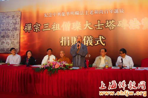 作为纪念明旸老和尚百年诞辰的系列活动之一,“禅宗三祖僧璨塔铭砖”捐赠仪式5月2日下午在上海龙华古寺举行。这件历经众多名家递藏的禅宗名物,正式入藏上海龙华古寺。