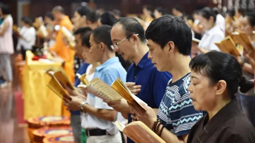 2016年8月20日,在文殊阁举行了成都文殊院第20期寺院体验营第一次志工共修。本次共修的志工主要是文殊院青年佛学会的学员,共同发心,报恩共修,忏悔业障,功德回向法界。两百多名的共修人员,在胜安法师、通迪法师的带领下,共修《八十八佛礼佛大忏悔文》和《地藏菩萨本愿功德经》。下午照证法师对本次“共修”的重要性进行了开示,明确共修的重要性。
