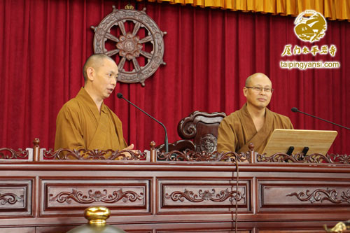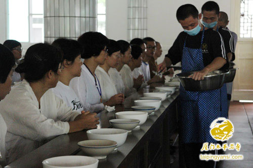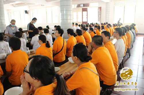 8月21日上午7时,在平兴寺圆通殿内,界诠法师首先赞叹学员们克服平兴寺的住宿条件,赞叹大家在厦门具足了很好的条件能够听闻佛法。接着,法师介绍了这五十年来平兴寺的建寺历史,经过文革、资金紧缺等种种困难,平兴寺从一个农场到现在,从一间间的草房、石头房到现有殿堂、戒坛、住宿等建筑群,从不到10个人到几百人学戒的规模,这一切离不开僧众弘法的决心,也离不开居士护法的发心。平兴寺不像大丛林的规模,也没有办居士学习班,只有浴佛节、普佛、佛七会有一些居士来参加,而寺院一切大小事务也由出家人自行管理、操作,这就是为了成就来这里学戒的僧人能够有一个较为安静的环境。最后,法师带领大家以普贤的偈颂来互相共勉,珍惜光阴,护持佛法,护持三宝。(法师开示全文将于明日在微信公众号 taipingyansi 发布)