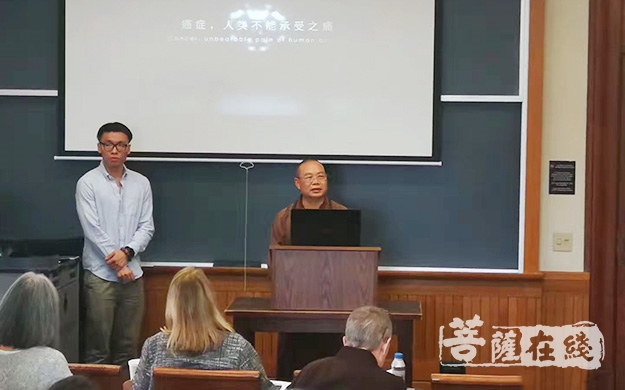 对于科研态度严谨、追求循证学的西方社会,康复营成果中最受瞩目、最具说服力的是科研数据。耀智大和尚讲到这一部分时,向与会者介绍康乐社的合作方——哈佛大学医学院麻省总医院康景轩教授。康教授从科学研究的角度,分析阐述大佛寺癌症康复项目的专业性、有效性、严谨性和优越性。