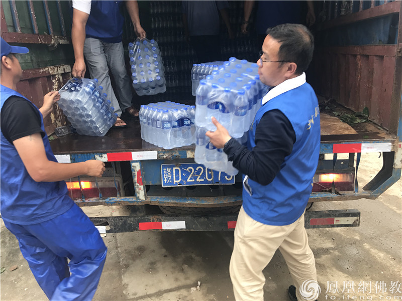 捐赠救灾物资(图片来源:凤凰网佛教 摄影:王啸成)