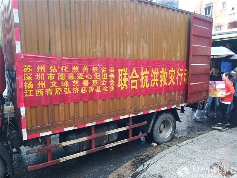 扬州文峰慈善基金会联合苏州弘化社慈善基金会、江西青原弘济慈善基金会等机构开展抗洪救灾行动(图片来源:凤凰网佛教 摄影:王啸成)