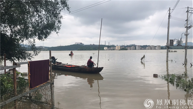 受灾村庄成为一片汪洋,交通极度受阻(图片来源:凤凰网佛教 摄影:王啸成)
