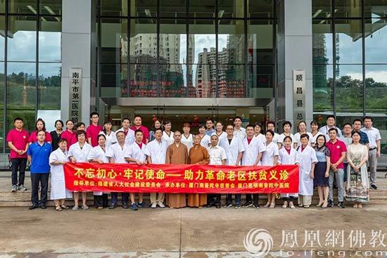 2019年7月6日下午,以“不忘初心·牢记使命”为主题的助力革命老区扶贫义诊活动启动仪式在福建南平顺昌县总医院举行。厦门南普陀寺慈善会副会长、厦门南普陀中医院副院长翁丽丽,厦门南普陀寺慈善会副秘书长普陀法师,厦门南普陀寺监院德煌法师,厦门南普陀寺副寺兼衣钵法旺法师,厦门南普陀中医院科教科负责人洪鹭娟,以及来自厦门的医疗专家团队参加了本次活动。
