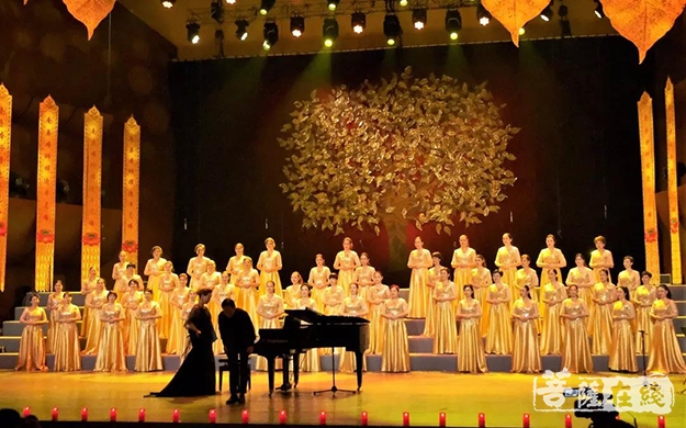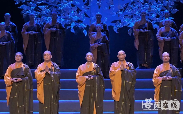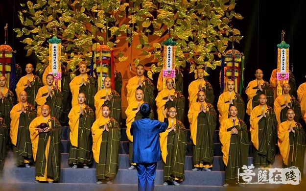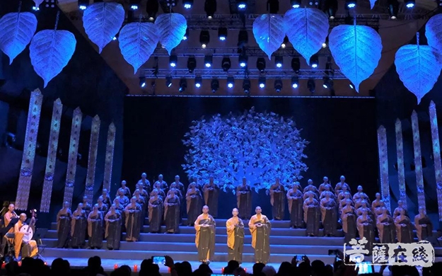 菩萨在线浙江讯 8月17日晚上,2019第五届中华慈孝文化节慈孝感恩音乐会在杭州灵隐寺上演。慈孝感恩音乐会由中国佛教梵呗艺术团主办,云南总佛寺、河南嵩山少林寺、北京雍和宫、杭州灵隐寺、河南开封大相国寺等联合承办。100多名来自全国各地的法师参加演出。