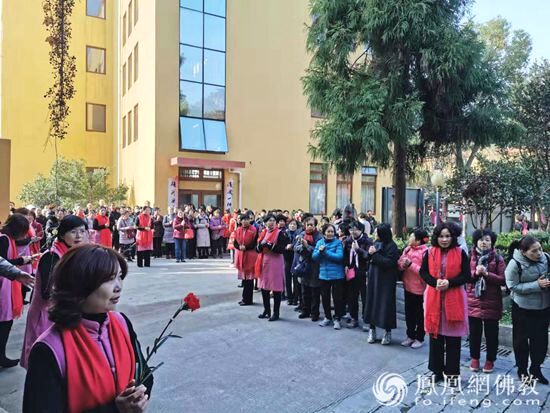 居士信众列队迎候(图片来源:凤凰网佛教 摄影:多宝讲寺)