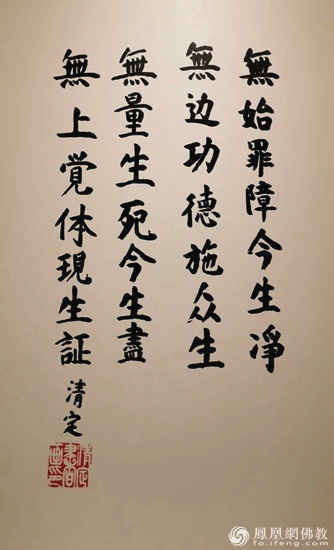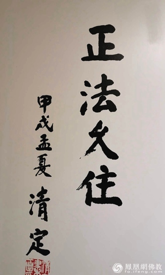 清定上师墨宝(图片来源:凤凰网佛教 摄影:多宝讲寺)
