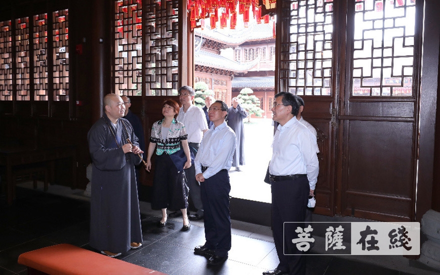菩萨在线上海讯 7月3日,上海市政协主席董云虎率部分政协委员赴玉佛禅寺调研。董云虎一行在中国佛教协会副会长、玉佛禅寺方丈觉醒法师陪同下,参观了寺院各殿堂,实地察看了玉佛禅寺新媒体中心和觉群书画院,详细了解玉佛禅寺的历史沿革、发展现状以及在育僧弘法、文化传播、慈善公益等方面的探索实践,并与僧职人员座谈交流。
