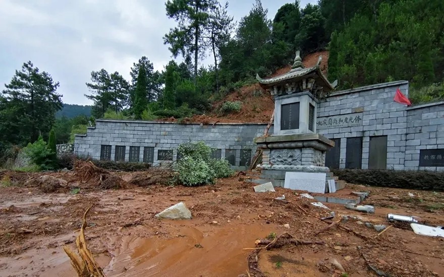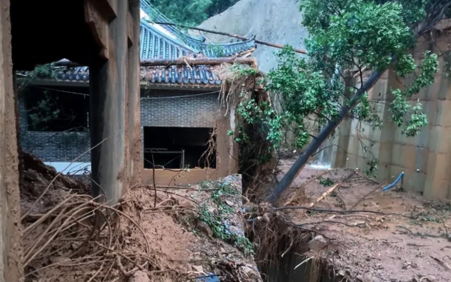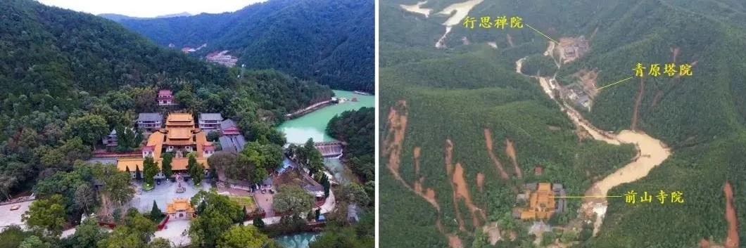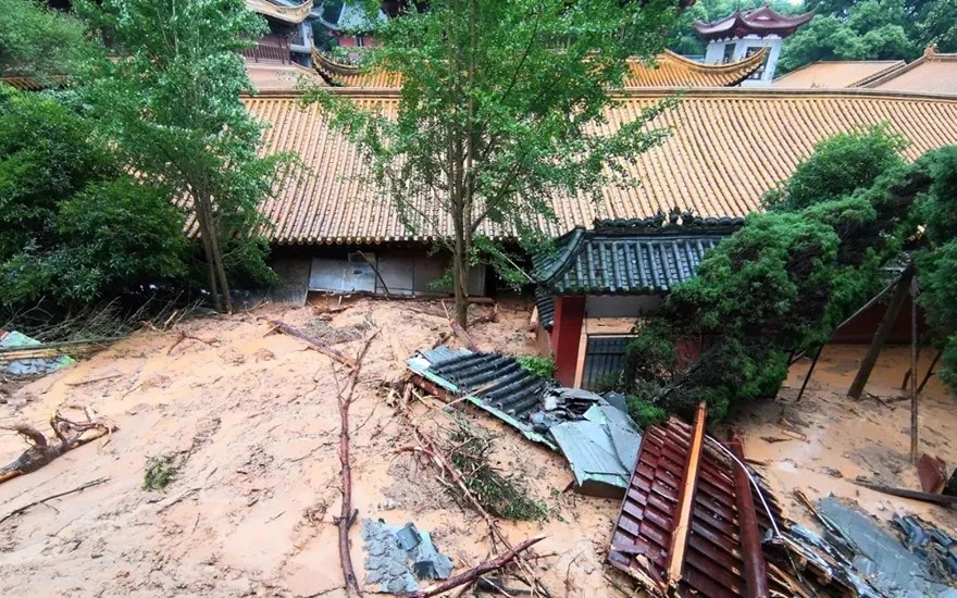 菩萨在线江西讯 7月9日至10日,青原山净居寺遭遇历史罕见特大暴雨。在雨水的持续冲刷下,9日晚,青原山部分山体发生重大滑坡,坐落在山脚下的净居寺遭受了山体滑坡和洪水的冲击,所幸寺内人员已及时转移,无人员伤亡。