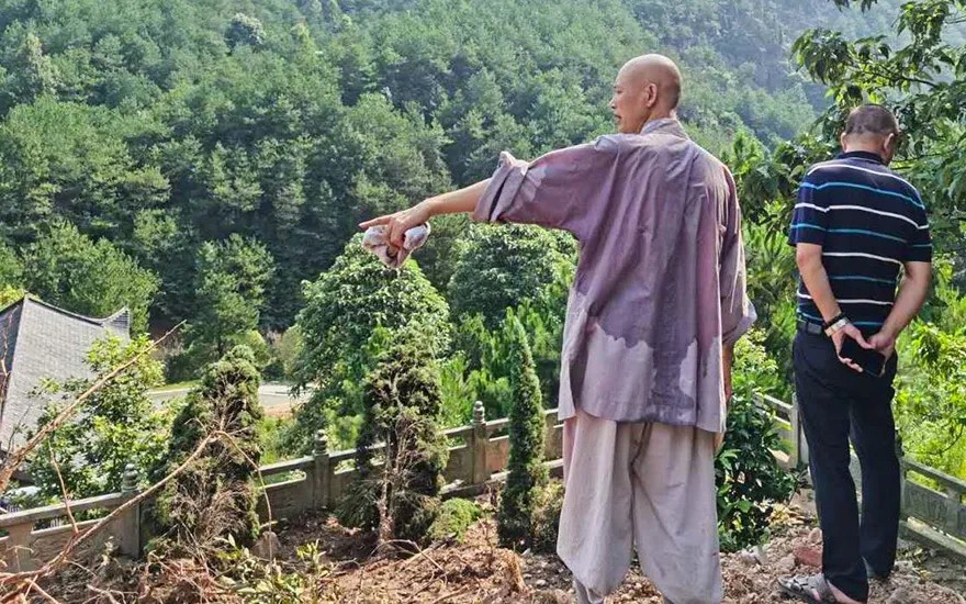 7月13日,中国佛教协会副会长、江西省佛教协会会长纯一大和尚一行,到青原山净居寺指导灾后修建工作