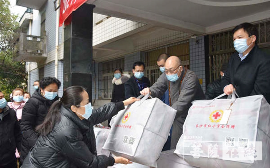 菩萨在线湖南讯 2月1日,湖南省佛慈基金会联合长沙市红十字会举行2021年迎新春博爱送万家活动。