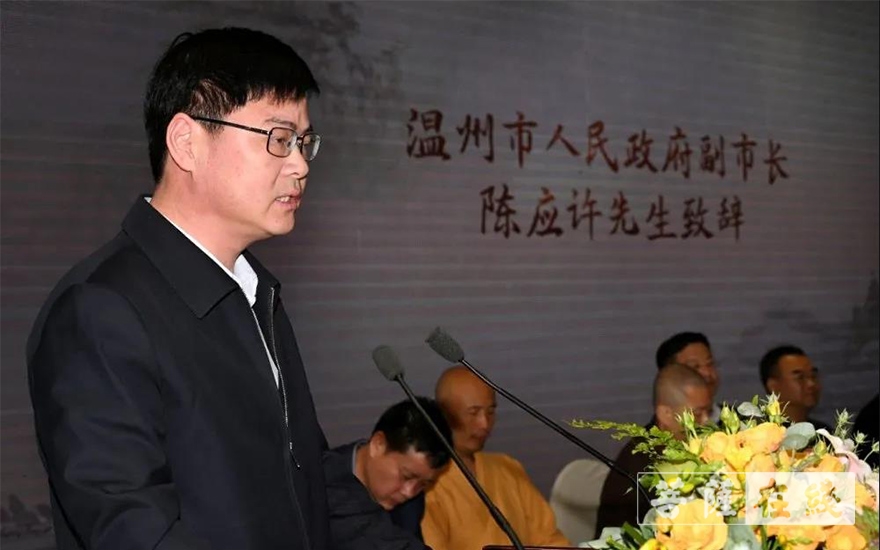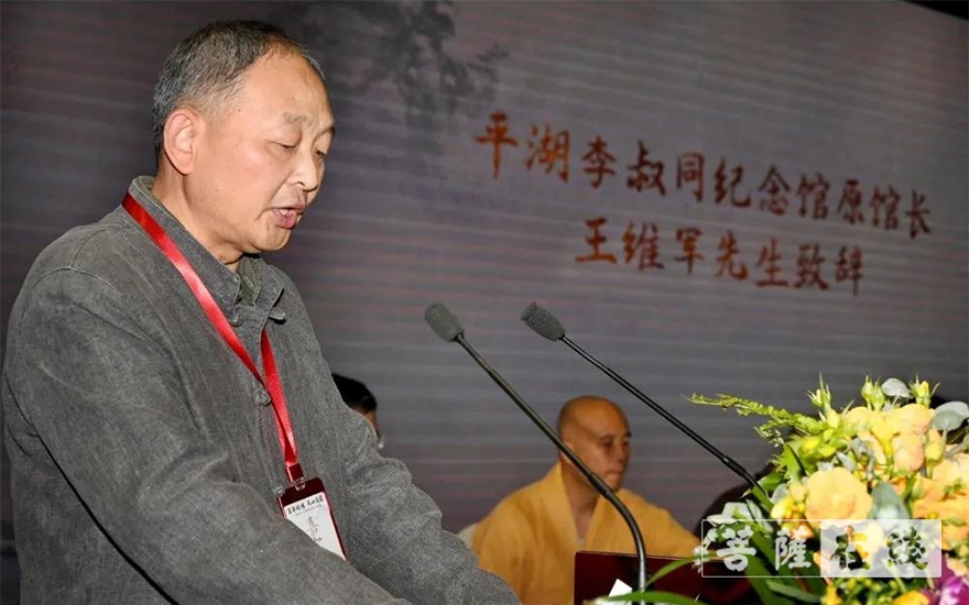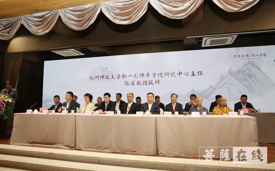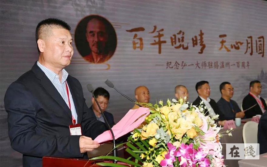 弘一大师嫡孙女李莉娟、杭州师大弘一大师丰子恺研究中心主任陈星、平湖李叔同纪念馆原馆长王维军、温州市佛协会长智明法师、浙江省佛协副会长光泉法师、温州市人民政府副市长陈应许、浙江省民宗委副主任钟新章先后致辞讲话。