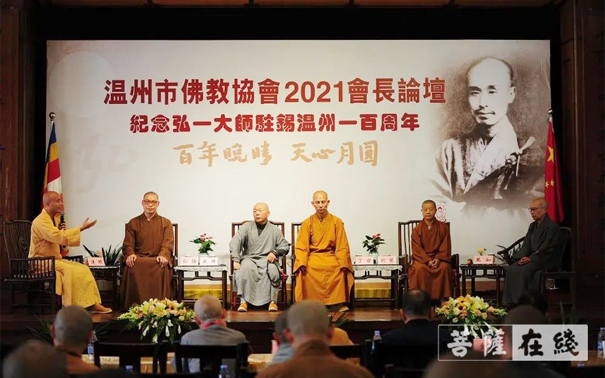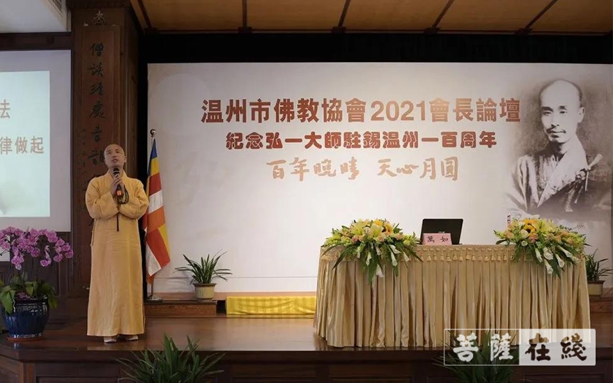 温州市佛协副会长了证法师、戒修法师、则慧法师、仁悟法师分别作了主题发言,赞叹弘一法师高尚的僧格及对中国近代律宗复兴的重大贡献,同时强调了戒律对个人修行和弘法利生,以及促进佛教与社会和谐相处的重要意义。
