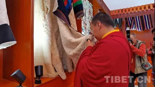 班禅仔细观看手工制作的羊皮袄 摄影:王淑