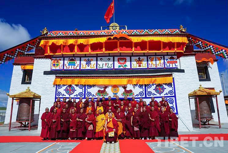 班禅与白日寺僧人合影留念(图片来源:中国西藏网 摄影:王淑)