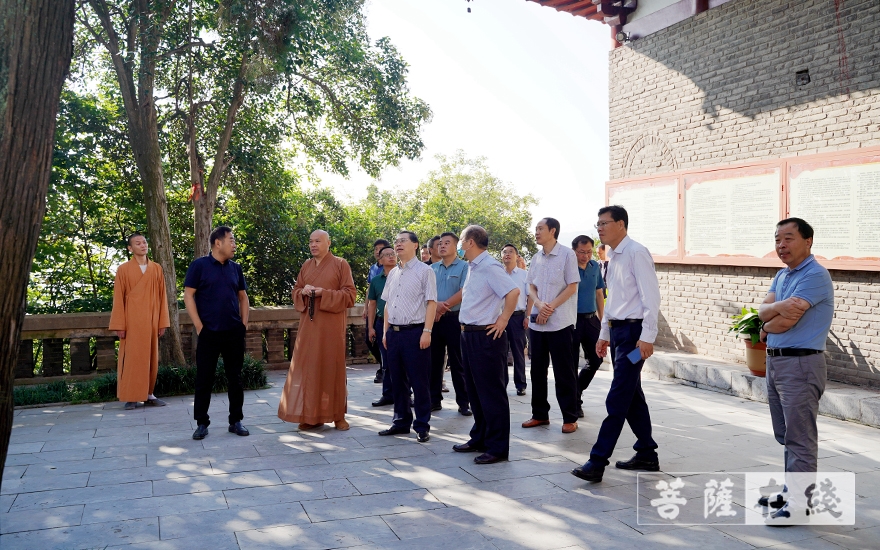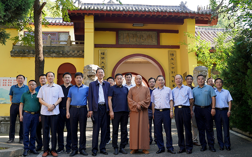 菩萨在线江苏讯 9月8日,在淮安市委统战部副部长、民宗局局长张峰的率领下,由淮安市民宗局副局长孙建龙、王育专以及宗教局机关、淮安市政保支队、各县区民宗局领导组成的学习考察团16人,前往徐州兴化寺参观考察。徐州市民宗局副局长单长丰、四级调研员邵伟、宗教二处处长石磊等陪同活动。