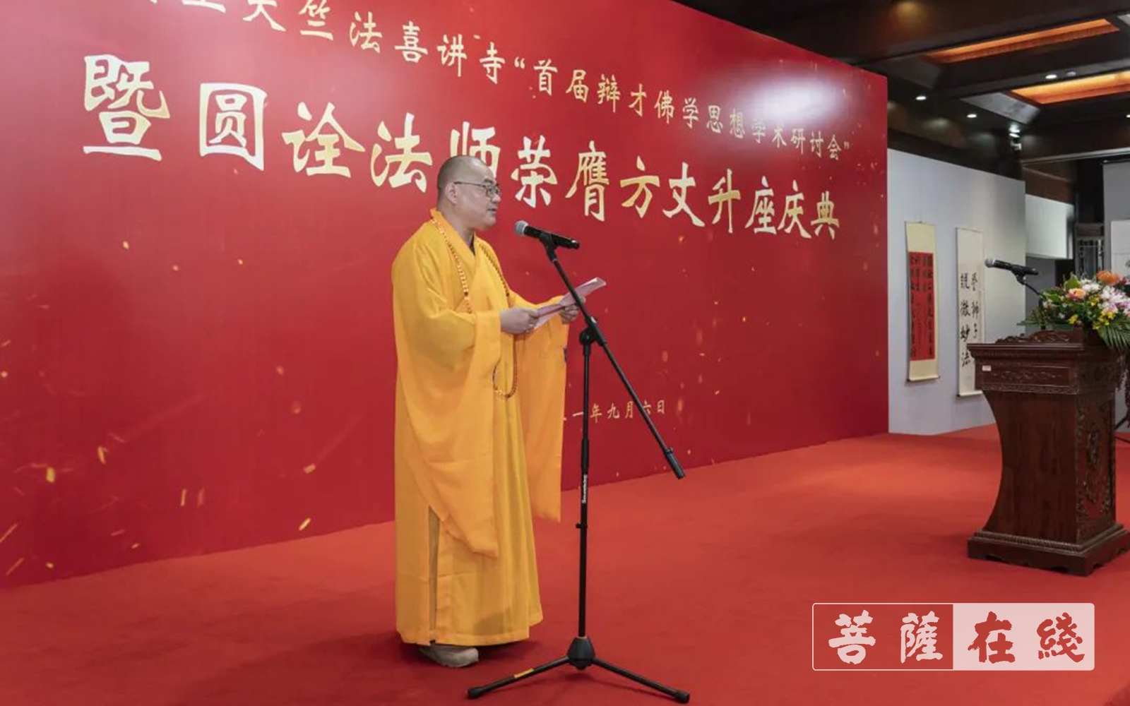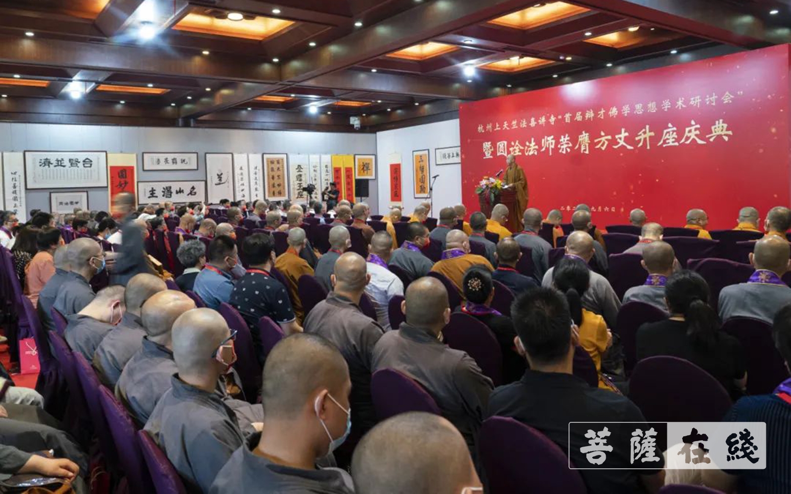 菩萨在线浙江讯 2021年9月6日(农历七月三十),欣逢地藏王菩萨圣诞,杭州上天竺法喜讲寺举行“首届辩才佛学思想”研讨会暨圆诠法师荣膺方丈升座庆典法会。