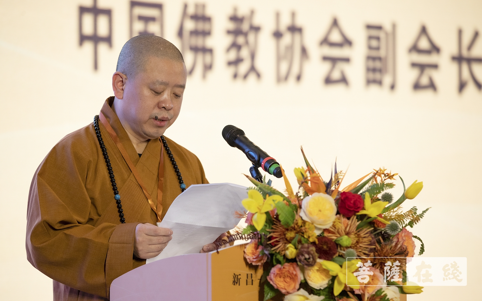 中国宗教研究学会会长、中国社会科学院世界宗教研究所所长郑筱筠代表中国社会科学院世界宗教研究所对会议召开表示热烈祝贺。郑筱筠指出,新昌在佛教中国化研究道路上主动适应时代发展要求,在理论上破题,在实践上落实,取得了丰硕成果,成为佛教中国化的重要发祥地。她希望新昌继续坚定文化自信,古为今用,务实创新,进一步彰显佛教中国化进程中的历史价值和现实意义(图片来源:菩萨在线 摄影:果然)