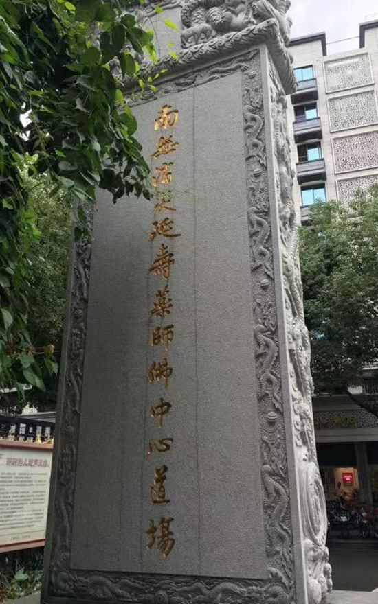 福州开元寺山门处“南无消灾延寿药师佛中心道场”碑