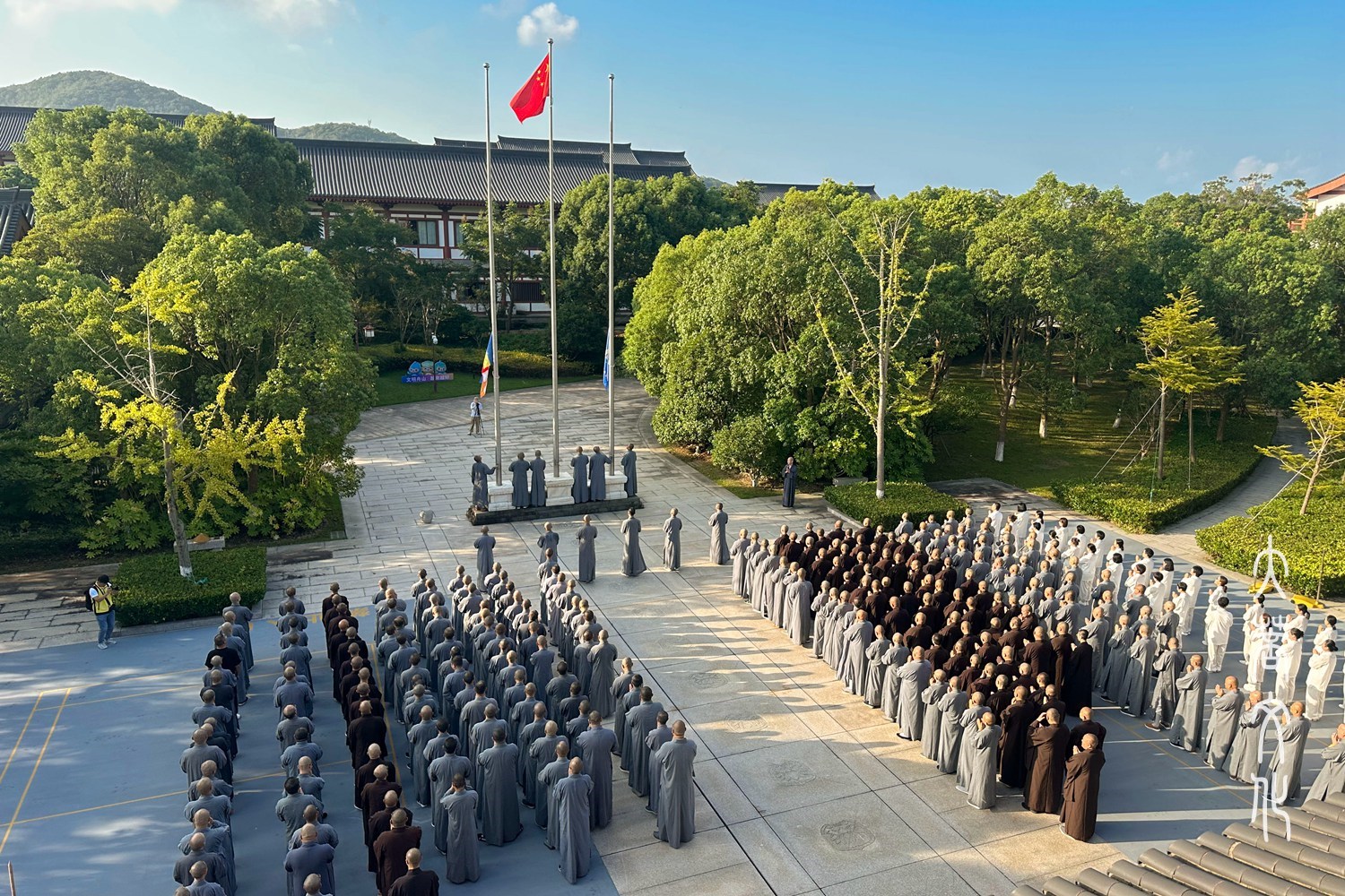 光泉大和尚作了慈悲开示。他代表浙江省佛教协会,向学院及新僧致以了诚挚的祝福,并提前预祝各位法师、老师教师节快乐,对于我院毕业生积极投身于佛教发展事业,逐渐成为浙江佛教的中坚力量表达了欣慰之情。他提出了四点希望:一是要强化思想意识,加强法治教育。他表示,爱国爱教,是佛弟子遵从佛陀教诲的具体表现。希望佛学院采取灵活多样的方式加强思政教育,让爱党、爱国、爱教的意识深入人心,使全体师生真正在意识层面上与党和国家同频共振,做佛教中国化的推动者。二是要坚定“僧才强教,人才为本”的教育意识。他表示对于当下的佛教发展而言,僧才的培育是最重要、紧迫的事情,希望学院树立“僧才强教,人才为本”的办学意识,把“为教育才”、“人才引进”作为工作重点,强化意识导向。三是要以“外树形象、内强素质”为教育导向。他表示在社会高速发展的形势下,佛教要通过讲经说法增强自己的影响力,要以社会主义核心价值观为引领,结合中华优秀传统文化,对教理、教义作出符合时代进步要求的阐释,做正信正行的引领者。四是要引导学僧树立“志存高远,勤勉笃行”的学修观。他表示普陀山是中国佛教四大名山之一,自古以来高僧辈出。希望大家珍惜与普陀山及观音菩萨的难得因缘,利用好在佛学院的学习时光,努力学修,发菩提心,行菩萨道。