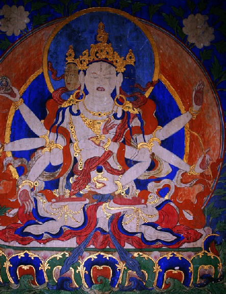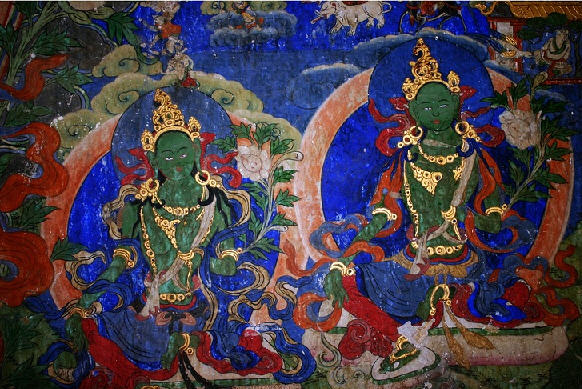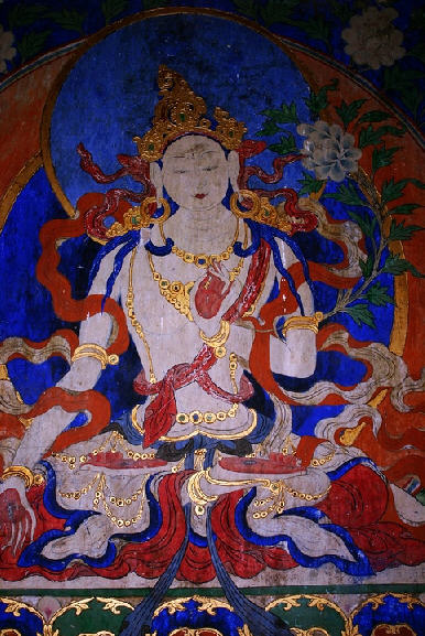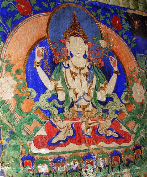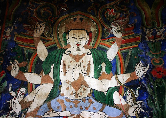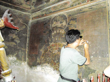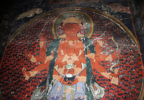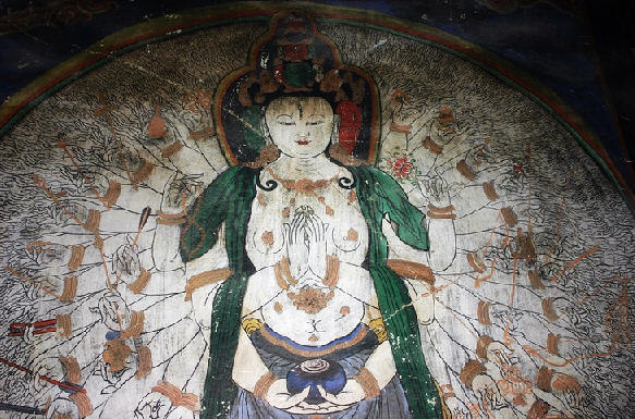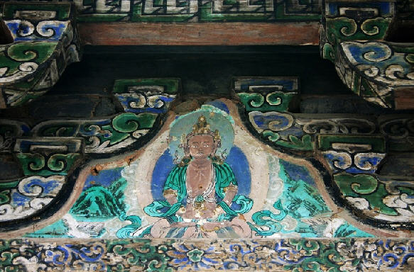 5、塔尔殿:正中竖有木制定心的塔座,中供白玉观音,周围壁上有彩绘佛像。