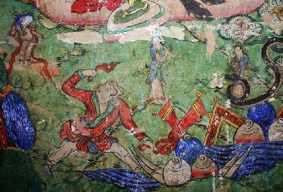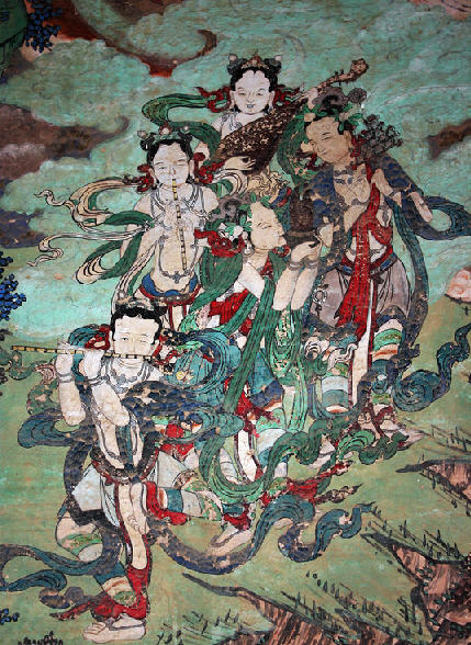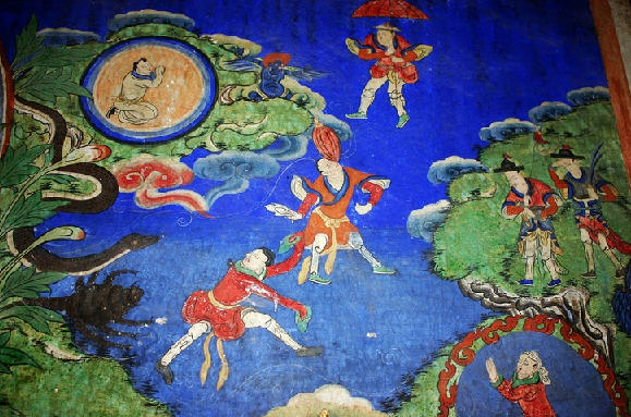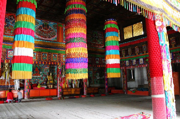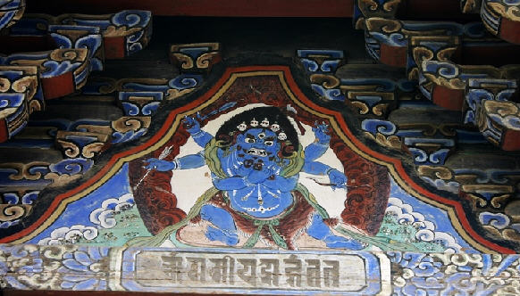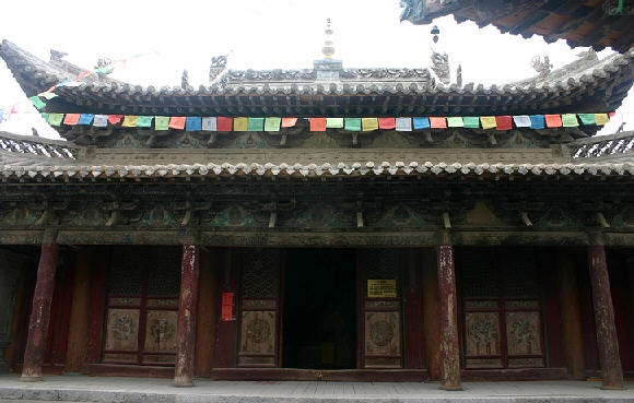 8、禅僧殿:与大经堂相对,殿内有壁画佛像,布设供桌,实为僧众举行小型佛事,讲经学习的小经堂。