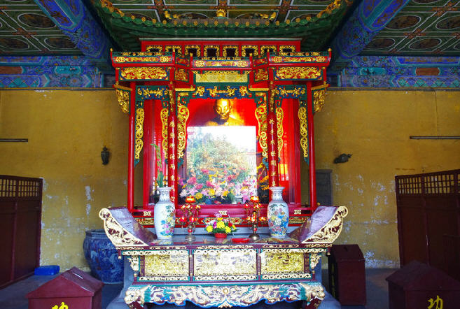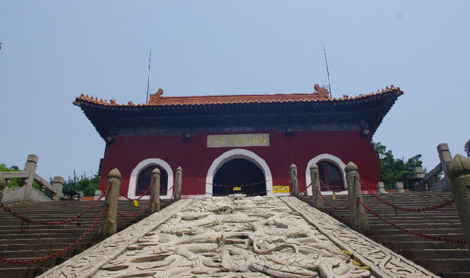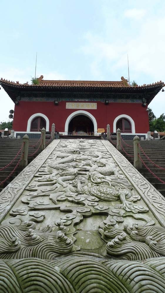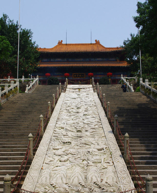 观音寺的中轴线上安有汉白玉九龙朝阳及莲花浮雕,名为御道。御道者过去皇帝所行之道路也。按封建王朝规定,不是宫殿则不能安御道。不是皇庭则不能安龙雕。南海观音寺是属于宫殿式寺宇,完全可以安上御道与龙雕。