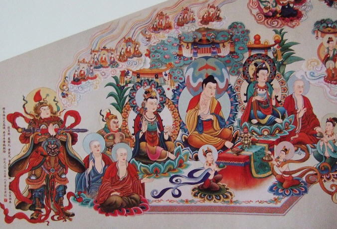 弘法寺位于深圳市仙洞植物园内,建于1985年,是我国佛教界历史最年轻的寺院之一。弘法寺壁画由画家牛兆瑞等历时十年绘制而成,由《释迦牟尼说法图》等8幅画组成。总面积达370平方米。采用了“木板刻绘工笔重彩壁画的制作方法”和“铝塑木复合板”两项发明专利新技术,对于佛教艺术创作和研究者具有重要参考价值。