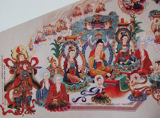 显通寺在五台山中心区台怀镇中央,背靠凌云耸峙的灵鹫峰,面南巍峨壮观的大白塔,西着冲涮烦恼的寿宁法水,门临通往佛国圣境的菩萨之路。寺院开阔,占地43700平方米。殿宇宏伟,计有400余间。明代万历年间之前,显通寺比现在还要宏大气派。这是因为,神宗皇帝要给慈圣李太后修建一座九莲菩萨道场,而把显通寺的塔院分立出去,敕曰:“大塔院寺”之故。