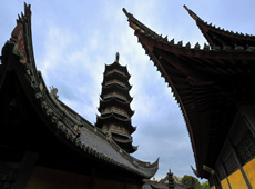 济南第一场雪后的四门塔