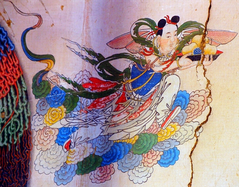 寿峰寺始建于明成化年间清时两次修葺五佛殿现存壁画飞天一系1775年绘制距今已230多年