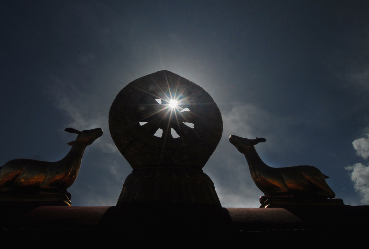 天上的太阳,地上的法轮,巧妙的组合,艺术而神秘的寓意佛是天之经地之意。