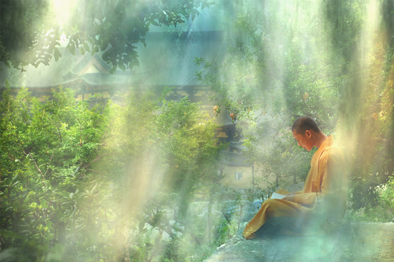 殿门一扇修禅妙境 佛香三柱求真坦途