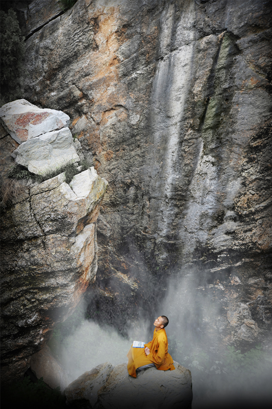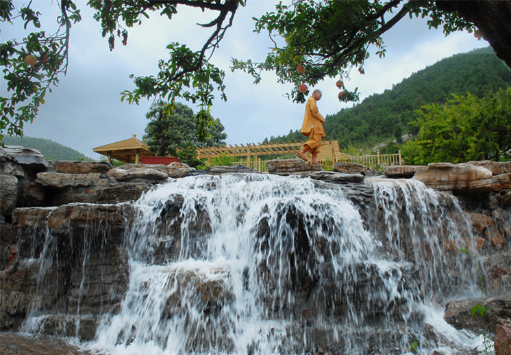 流泉飞花和钟齐鸣 亭台殿堂听瀑轰响