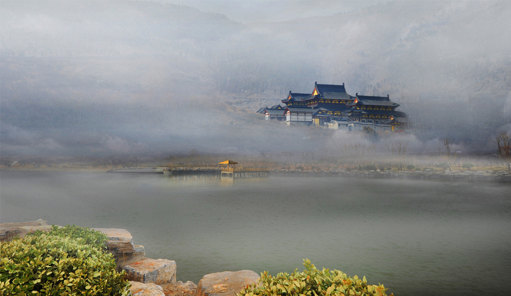 清山茵茵云雾蒸腾 殿堂巍巍禅意兴浓