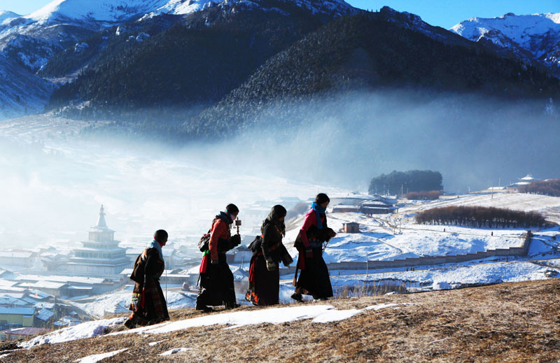 2011年11月信教群众在甘南郎木寺进行转山活动。