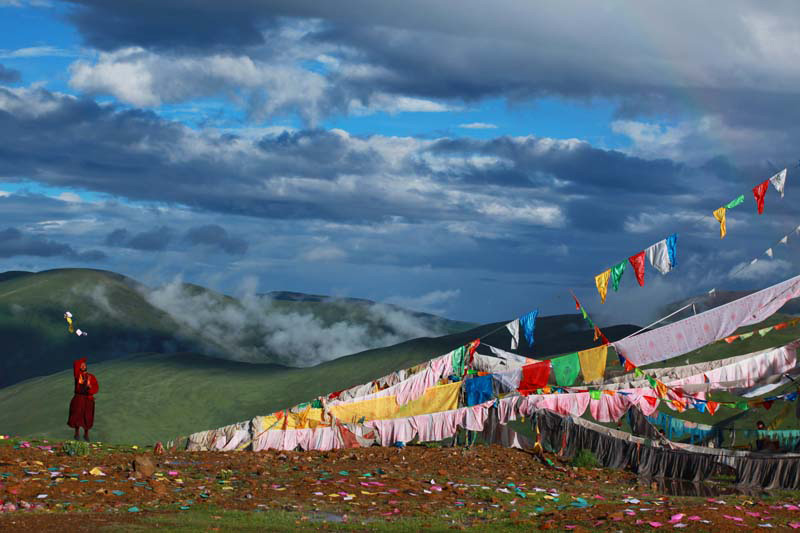 采风途中,在久治草原遇到一位小喇嘛在虔诚的祈祷。