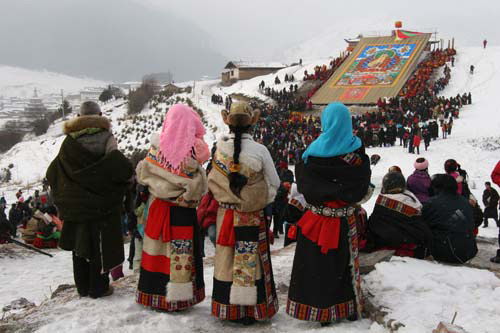 正月十三在郎木寺举行晒佛。