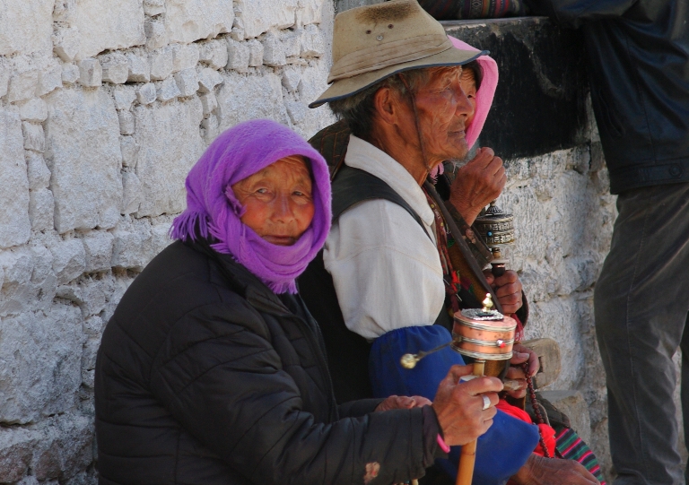 朝拜后在寺院门口小歇的藏族同胞