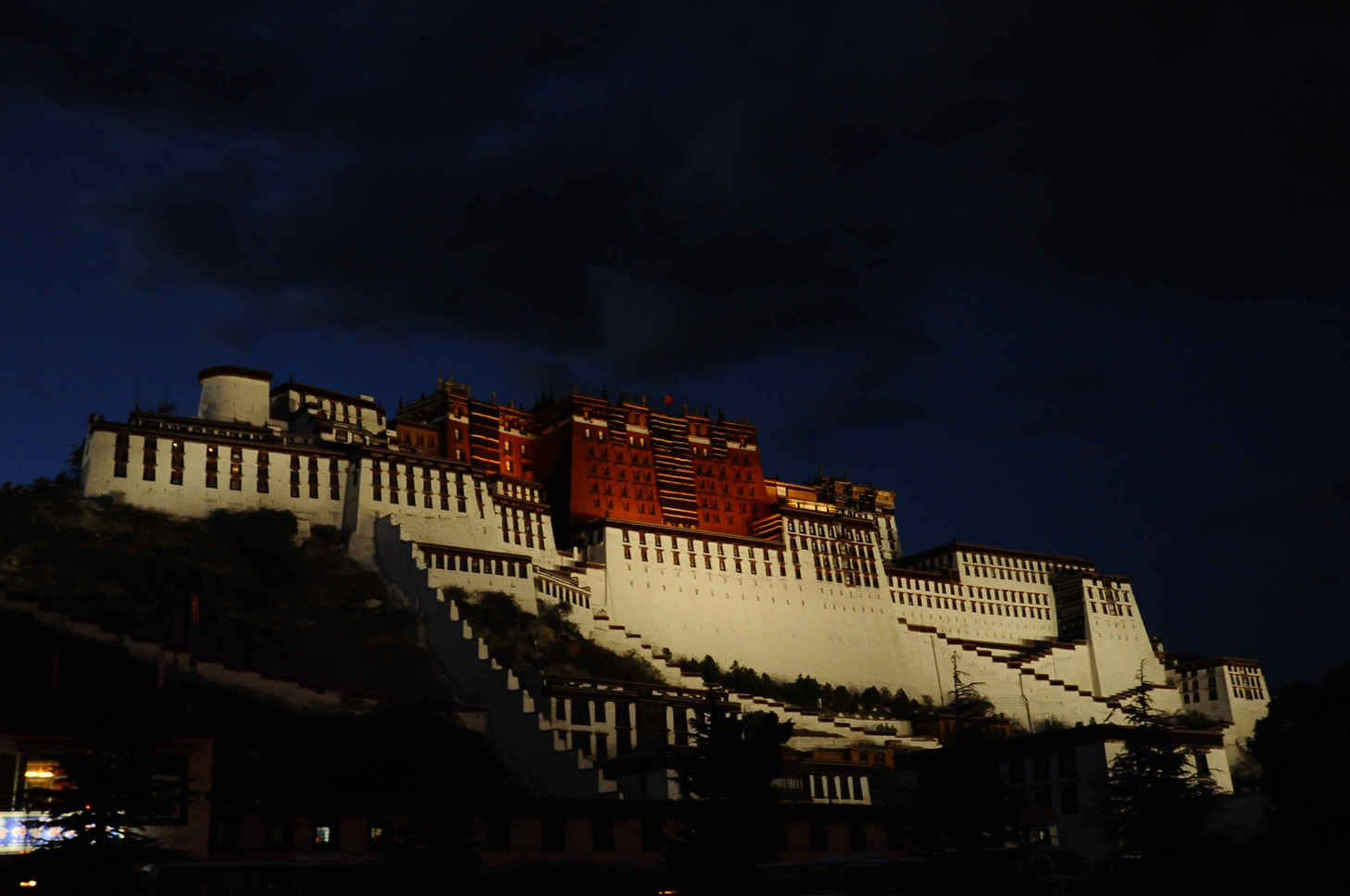 夜幕下,布达拉宫仍然显得壮观无比,而且也显得更加神密