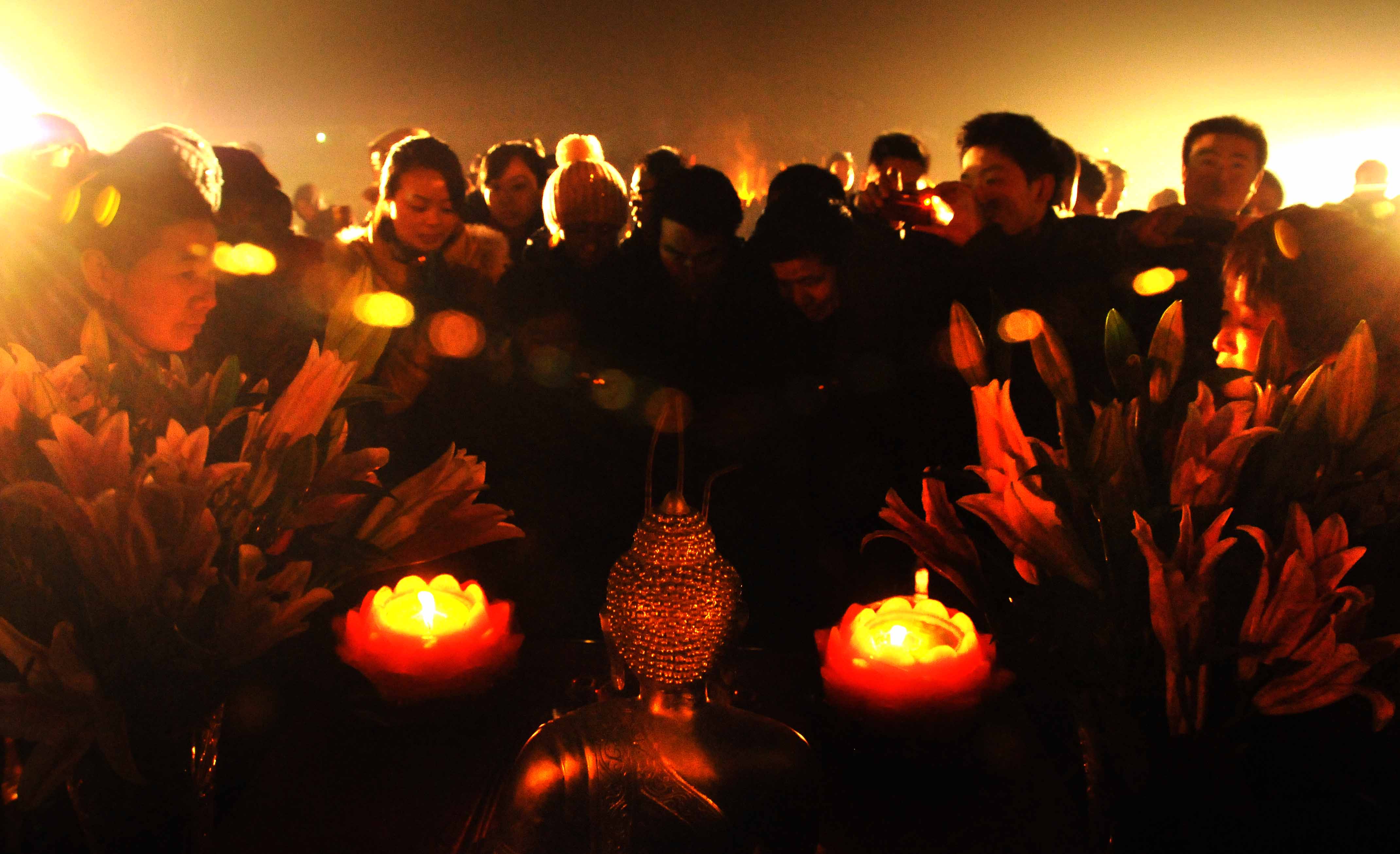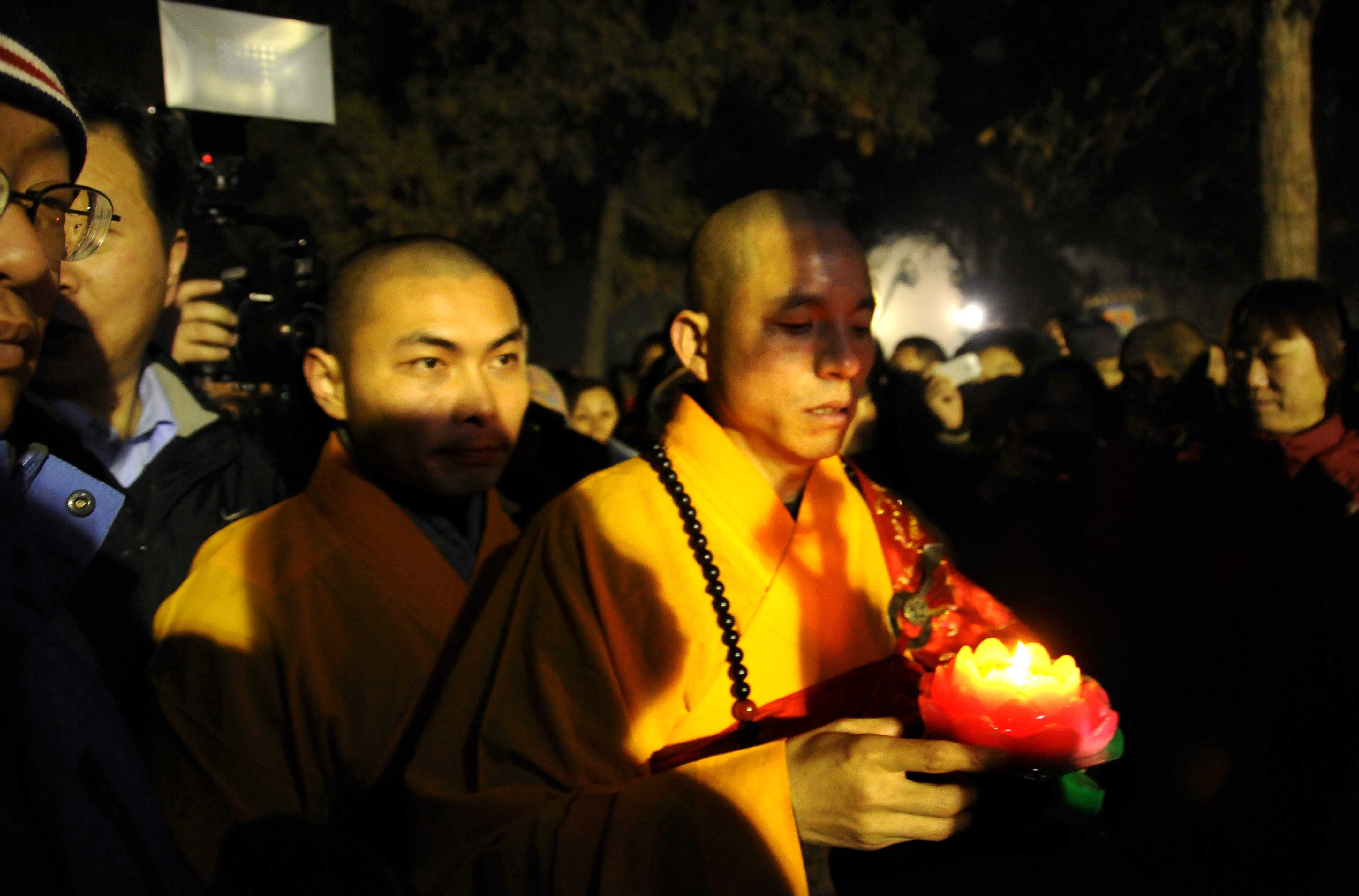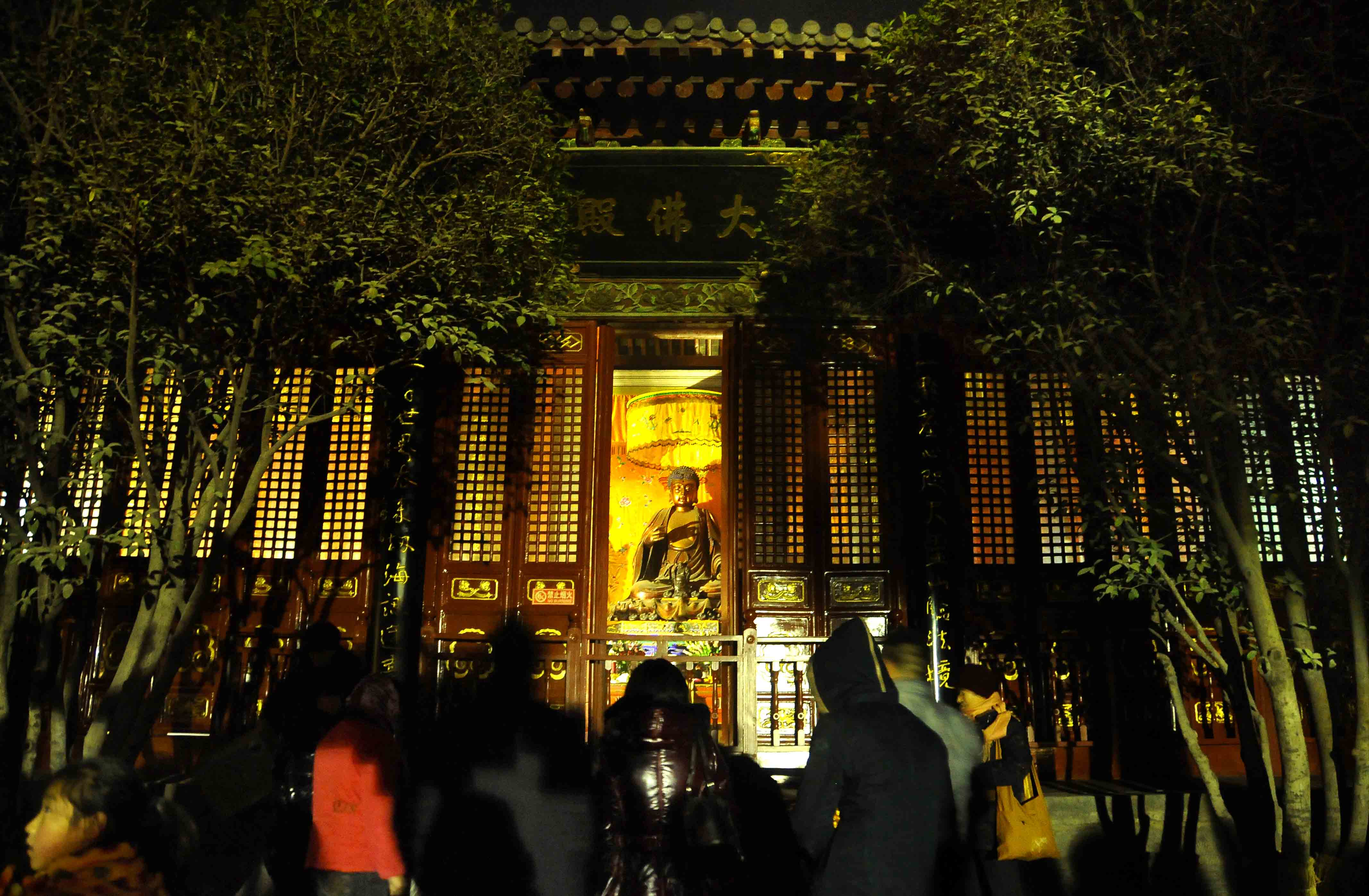 晚上人们对佛祖的跪拜,祈求新的一年福寿安康!