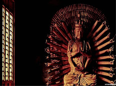 释迦牟尼是佛教创始者,为显密教派共尊之本师。释迦牟尼意为“释迦族之圣者”,佛为“佛陀”之略,意为“觉者”。此幅中绘释迦牟尼佛现成道相,面相慈和,螺发高髻,身着袒右田相袈裟,右手垂置于右膝处结触地印,亦称降魔印,左手置于腹前平托钵盂,结跏趺坐于莲花宝座上,下承须弥狮子座,座前设案,纷陈各种供养,身后的背光华美端庄。此轴绘制精细,构图及人物造型略带早期尼泊尔画派之遗韵,云间的供养天众则汉风浓郁,法座前的声闻弟子身体修长,面容清秀,身着通肩袈裟,衣纹流畅,若兰叶描法,这是一幅带有藏画古风的内地唐卡佳作。
