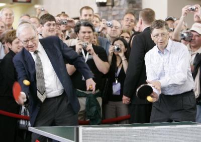 附图:盖茨与巴菲特一起打乒乓球,今后,他们将一起探讨如何做慈善。