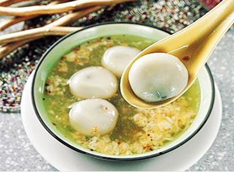 正月十五吃元宵,“元宵”作为食品,在我国也由来已久。宋代,民间即流行一种元宵节吃 的新奇食品。这种食品,最早叫“ 浮元子”后称“元宵” ,生意人还美其名曰“元宝” 。元宵即"汤圆"以白糖、玫瑰、芝麻、豆沙、黄桂、核桃仁、果仁、枣泥等为馅,用糯米粉包成圆形,可荤可素,风味各异。可汤煮、油炸、蒸食,有团圆美满之意。陕西的汤圆不是包的,而是在糯米粉中"滚"成的,或煮司或油炸,热热火火,团团圆圆。