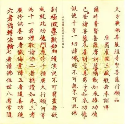 在汉传佛教中,有持诵《普贤行愿品》经文的功德,等于持诵《华严经》全文的说法。所以,我们要按照《普贤行愿品》去实践。