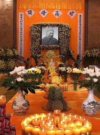 一诚长老的灵堂设在真如禅寺正觉苑,鲜花簇拥,佛号萦绕