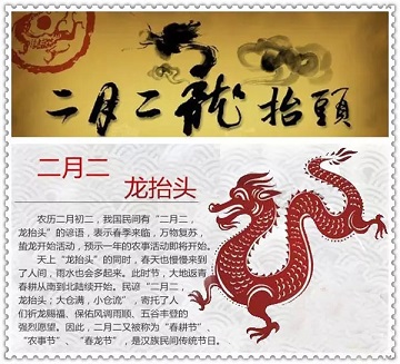 二月二即龙抬头又被称为“春耕节”、俗称青龙节,此时阳气回升,大地解冻,春耕将始,朝气蓬勃,丰收在望好兆头。古代庆祝“龙头节”,其目的是祈求雨水普降,灾害消除,风调雨顺,五谷丰登。
