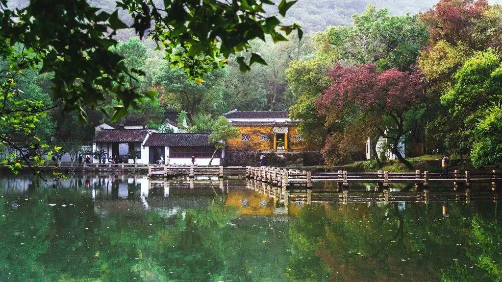古刹旁边有泉水顺着山涧从山里流出来,长年不断,汩汩流淌,汇集到古刹前面的湖中。