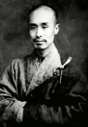前此一星期,饭后去上工,劈面来三辆人力车。最先是个和尚,我并不措意。第二是子恺先生,他惊喜似地向我颠头。我也颠头,心里就闪电般想起“后面一定是他”。人力车夫跑得很快,第三辆一霎往后时,我见坐着的果然是个和尚,清癯的脸,颔下有稀疏的长髯。我的感情有点激动,“他来了!”这样想着,屡屡回头望那越去越远的车篷的后影。
