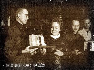 又过了一、二年,止语期满,我开始讲话。那时候老和尚请我母亲到万佛城来过她五十岁生日,他说第一次在美国有一个比丘的母亲到庙上来过生日。老和尚叫育良小学所有的女学生做观音圣诞的卡片给我母亲,每个小孩都要画观音菩萨像。那天她收了三十多张生日卡,上面都是有关观音菩萨的对子或者小诗,或者庆祝的话。母亲非常感动的说:“到底观世音菩萨我也认识了。”然后老和尚请她跟大家讲话,母亲上来说:“你们这里的出家人要注意了,你们的老师父是一位很有智慧的人,他给了我这串念珠,教我念‘南无观世音菩萨’,我现在会念啦。”过后,母亲跟我说起那天的事情,她说:“你知道吗?第一天我到了万佛圣城,我非常的害怕,我怕他们在我的茶里放毒,我喝了以后是不是也会像你这样没了头发。我就哭了,这时候你的师父出来了,他跟我握握手,虽然我很著急,可是在我心深处却能了解老和尚对我说的话。然后老和尚叫我坐上他那个小高尔夫球车…〈你们知道万佛城地方大,老和尚开那个小噗扑车,就是那个高尔夫球车,来来去去。〉那天晚上,他正眼看著我说:"You should be happy you have Bhikshu for a son. Your son has followed me for life after life. You haven't lost a son; you've gained a monk. You should be grateful. Your son will have many things to do."〈你应该生欢喜心,你的儿子是一个比丘,你的儿子是生生世世跟随著我。你没有少一个儿子,你是多了一个比丘,你应该感激,你的儿子有很多事情要做。〉